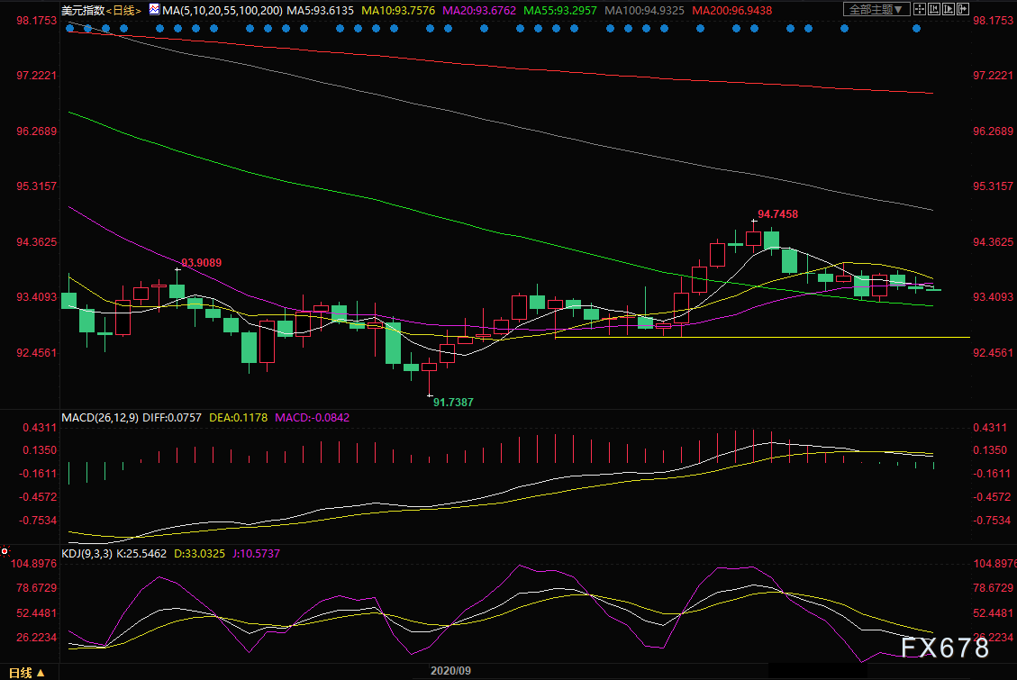 周五亚市交投于93.59附近,因投资者在等待有关美国近期是否出台新的财政刺激措施的最新消息,美元整体跌幅不大,令黄金多头有所顾忌。