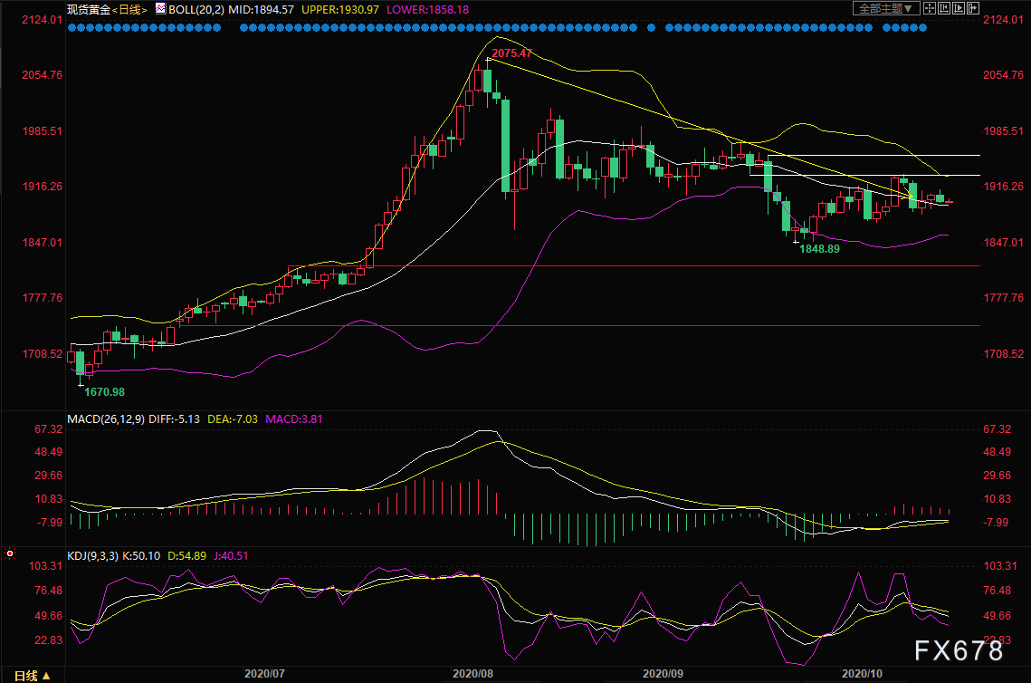 周一(10月19日)现货黄金窄幅震荡于1900关口附近,临近美国大选,美国新一轮刺激计划仍看不到希望,全球经济前景不佳,逢低买盘仍给金价提供支撑,机构和散户普遍看涨本周金价,但欧洲新冠疫情的持续恶化,推升了美元的避险需求,仍对金价有所限制。需要留意全球股市的表现,警惕持币偏好的变化。