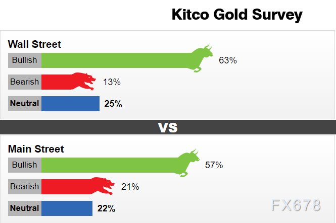 KITCO最新调查显示,机构投资者和散户仍普遍看涨本周金价。