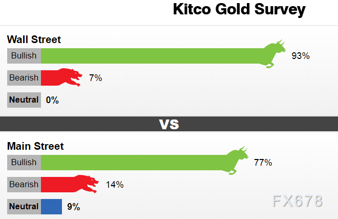 尽管散户投资者对黄金的看涨程度略低于华尔街,但他们仍对黄金极为看好。本周参与Kitco在线调查的人数增加,最近金价的突破吸引了人们对黄金的新兴趣。