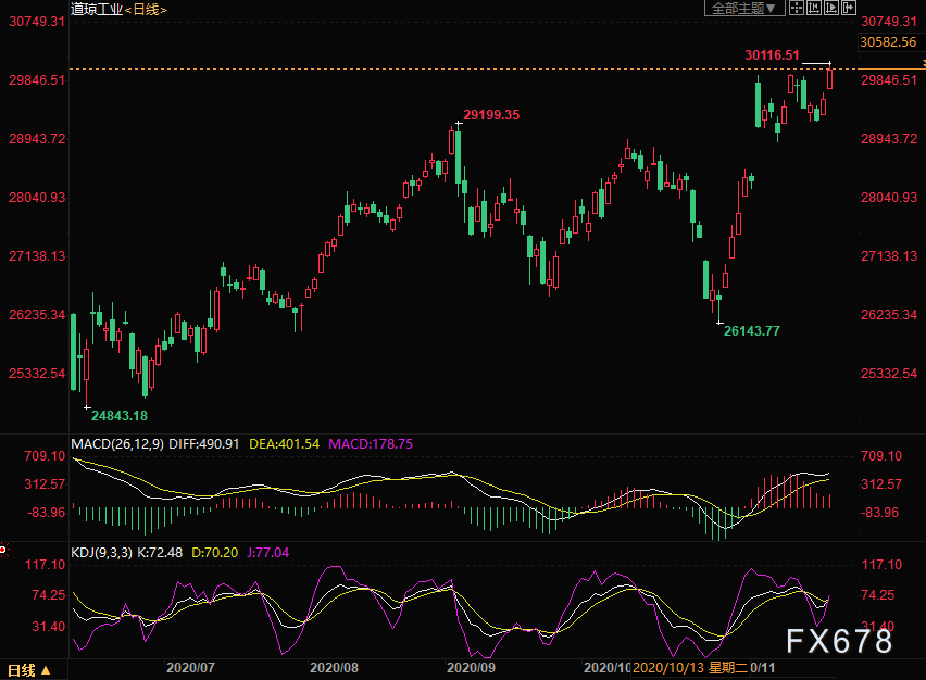 与此同时,美股道指创下历史新高,首次突破30000点,显示投资者对2021年经济复苏充满期待,削弱了中长线投资者对黄金的避险需求。