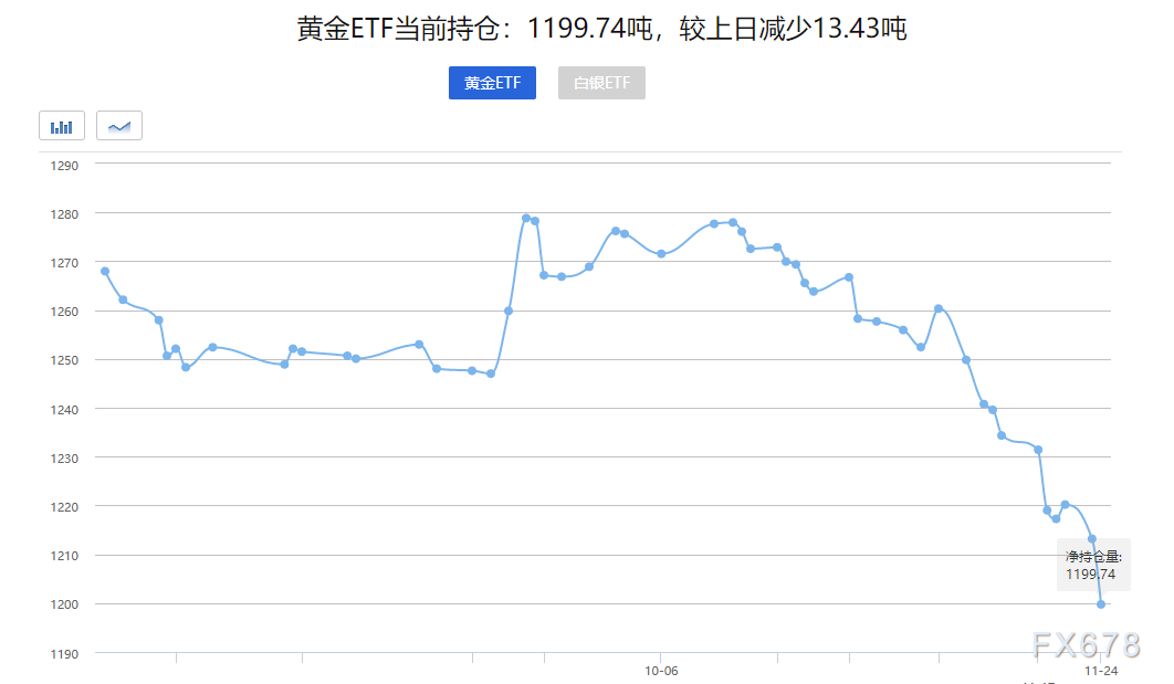 周三(11月25日)现货黄金低位徘徊,涨幅约0.2%,目前徘徊于1810附近,周二(11月24日)黄金大跌1.65%,一度跌至1800关口,因新冠疫苗取得进展,以及白宫开始权力交接带来的希望,推动投资者蜂拥入手风险更高的资产。美元指数大跌0.39%,同样受到疫苗与白宫权力交接的拖累。黄金ETF持仓昨日大跌13.43吨,两天减持20吨,显示投资者对金价后市感到担忧。美银的分析师团队下调了其对现货金价的预期,当前预计国际现货黄金价格在2020年底将跌至1775美元。