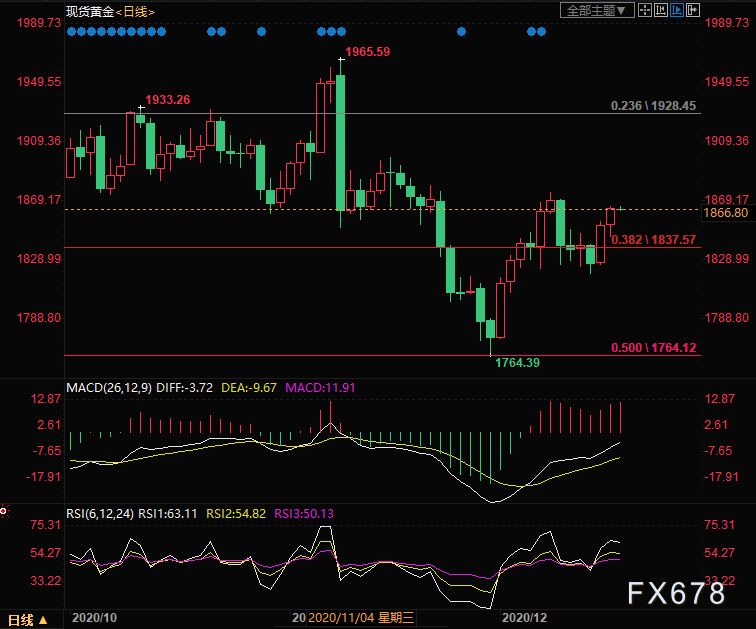 美国11月零售销售月率-1.1%,预期-0.3%,前值0.3%,零售数据不佳,因疫情复燃扼杀消费者活动,也为黄金提供避险支撑力。
