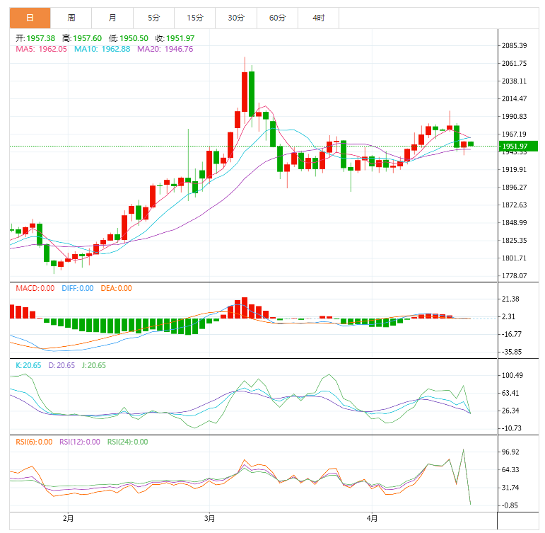 周四亚盘,现货黄金窄幅震荡,目前交投于1953美元附近;周二黄金探底回升,因美联储褐皮书称美国企业受到劳动力短缺和高通胀的双重夹击,而数据显示美国3月成屋销售续降并创近两年最低,美元指数大幅回调,再加上俄罗斯打击几十处军事设施,美国宣布新一轮对俄制裁,避险买需回升,给金价提供支撑,短线走势不确定加强。