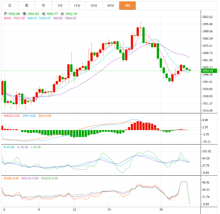 本周四迄今,金价处于狭窄的盘整区间,在略低于1960美元关键价位的时候停止了反弹。