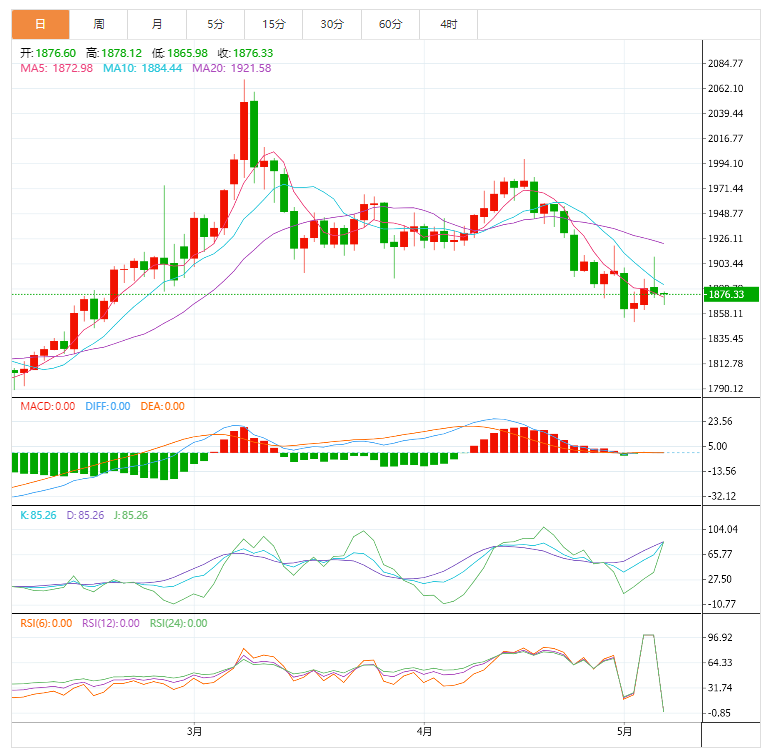 美国经济在4月份可能增加了391K个工作岗位,而之前是431K。美元多头要想继续周四的反弹,就需要强于预期的数据,从而将金价推至200日移动均线(DMA) 1,835美元。但若数据令人沮丧,则可能证明美联储立场不那么强硬是合理的,促使美元从多年高位恢复修正,同时令金价受益。