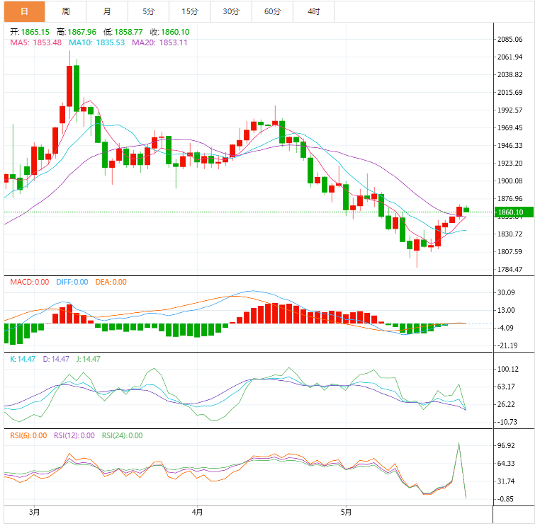 也就是说,美元指数上涨0.21%,从四周低点反弹,重新回到102.00关口。美元指数的反弹可能与来自中国和韩国的风险消息有关,以及市场对美国4月份耐用品订单的准备,以及联邦公开市场委员会(FOMC)会议纪要。预计美国4月份耐用品订单为0.6%,此前为1.1%。