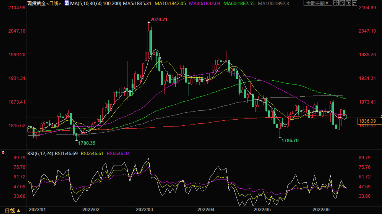 2、金价逆转至1840美元附近 尽管7月出现鹰派的可能性更高