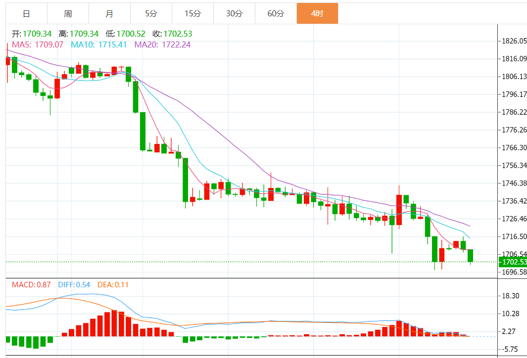 技术4小时图显示,金价难以保持在1700美元/盎司下方,因此,在为任何进一步下跌做准备之前,看空的交易者需要谨慎一些。尽管如此,黄金无法获得任何有意义的反弹动力,表明近期的抛售倾向可能仍远未结束,风险仍偏向于下行。下行方面,若跌穿隔夜低点(1698-1697美元/盎司附近),将被看空交易员视为新的触发因素,令金价走势脆弱。