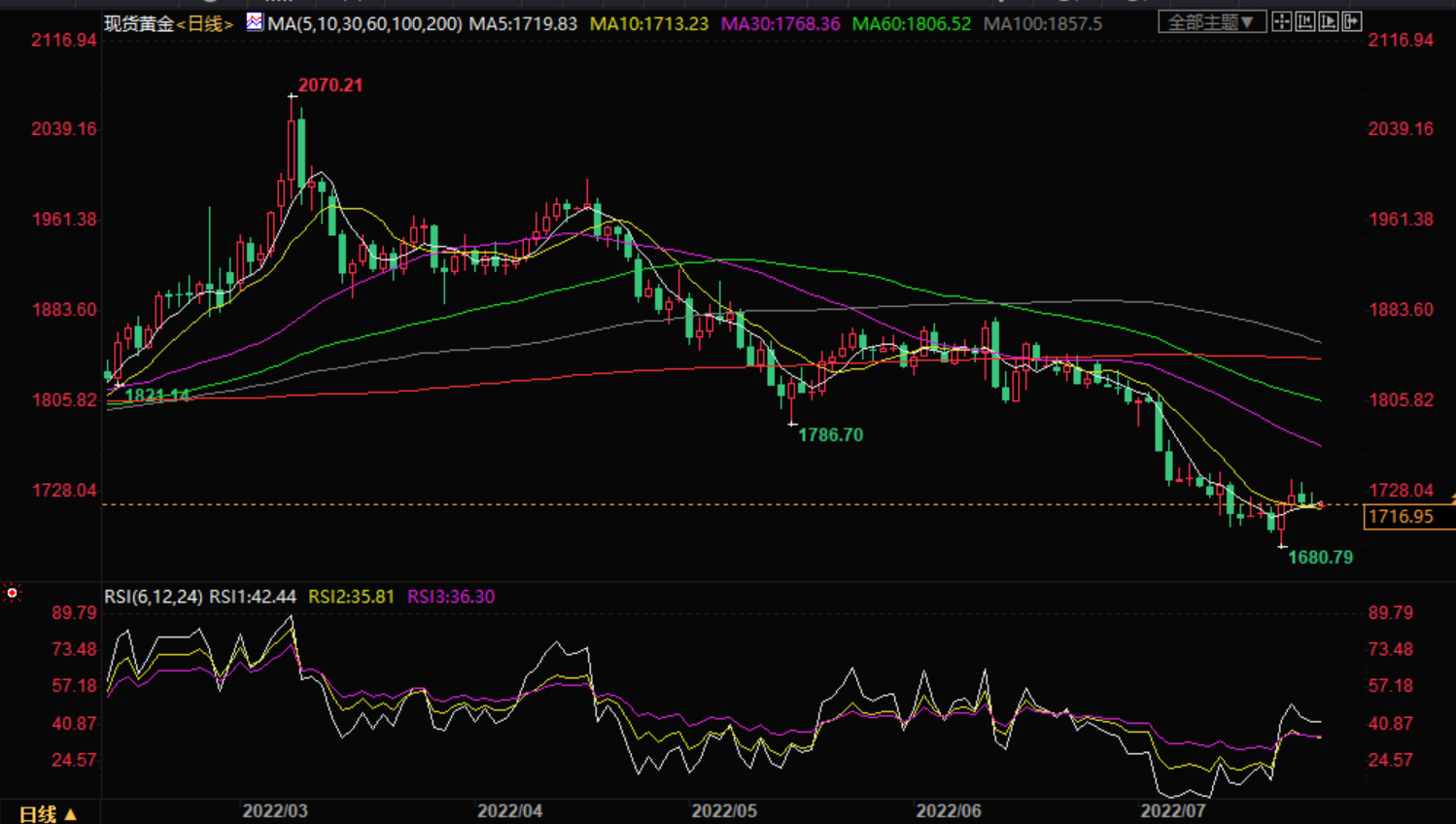 然而,值得注意的是,对衰退的担忧与美联储可能的鹰派预期一起,使金价价格承压。在国际货币基金组织(IMF)再次将今年的全球增长预测从4月份的3.6%下调至2.9%后,对经济放缓的担忧加剧。总部位于华盛顿的该组织还对俄罗斯向欧洲的天然气全面切断以及俄罗斯石油出口下降30%带来的更多经济困难表示担忧,这两个问题都迫在眉睫。值得注意的是,全球零售商沃尔玛令人失望的业绩也加剧了对经济衰退的担忧。