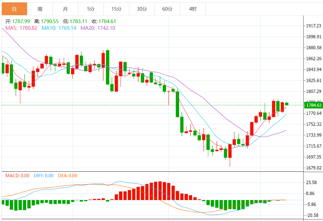 另一方面,假如金价明确突破长达七周的下降阻力线(目前在1792美元/盎司附近),那么金价可能上探61.8%斐波那契回撤位1803美元/盎司,金价需要突破上述水平,以吸引多头回归。
