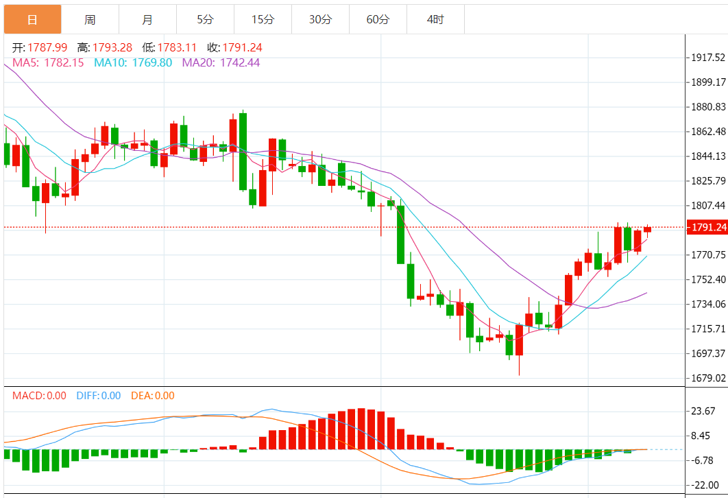 技术上,金价突破关键的50日均线1787美元/盎司。14日相对强弱指数(RSI)仍位于中线上方,令黄金看涨兴趣仍得到支撑。目前黄金多头目标瞄准突破1800美元/盎司关口,以继续反弹动能;如果看涨动能升温,金价有望升至7月5日高点1812美元/盎司。