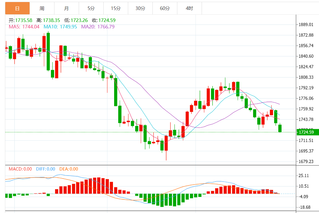 上行方面,金价短期阻力在1740美元/盎司附近;若突破该阻力,那么10日均线和50日均线(分别在1751美元/盎司和1763美元/盎司附近),将限制金价短期上升空间。