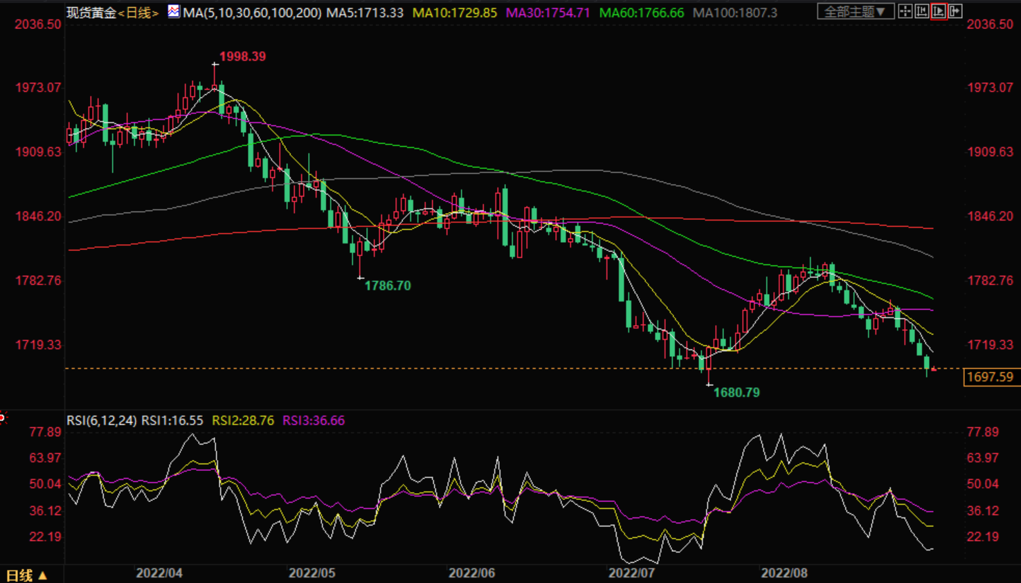 周五亚盘,现货黄金徘徊1700下方,金价周四跌破1700美元的关键水平,为7月以来首次,因美元上涨和对激进加息的预期削弱了黄金的吸引力。此外,由于美元指数在109.98的20年新高附近徘徊,金价仍面临下行风险。不过,若非农报告中的薪资数据表现疲软,这可能会抑制美元指数的涨势。