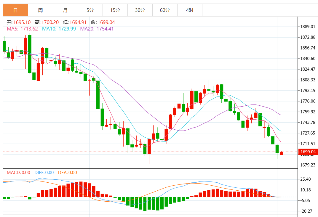 技术日图显示,金价需要升破一日波段的61.8%斐波回档位1730美元才能继续反弹指向一周关键点1707美元。