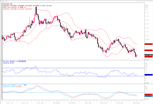 周五(9月16日),周五金价一度下跌0.7%,盘中最低去抵1653.40,该水平为1年半以来的最低水平。后在纽约收盘阶段出现反弹勉强收盘于1674.02美元水平。全周来说跌幅达到2.45%。这主要缘于美国8月通胀数据高于预期,美联储激进加息前景再度得到强化,美元重新走强。