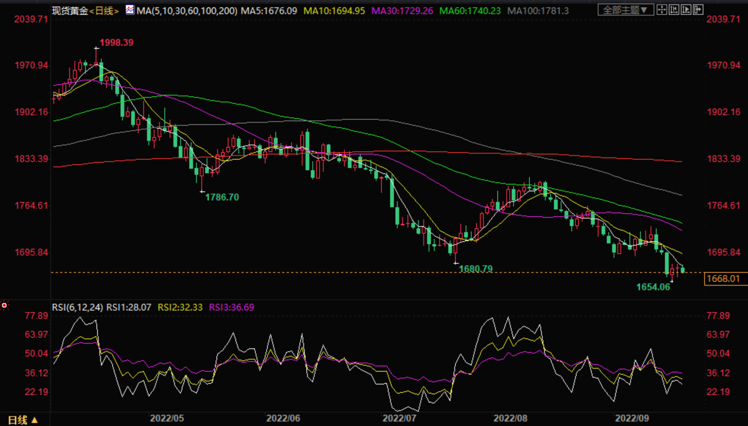 市场普遍预期美联储本周将升息75个基点,不过升息100个基点的可能性仍然很小。在美国国债收益率在各时间曲线上飙升至多年高点之际,激进的全球紧缩押注给无息黄金带来了负面影响。