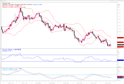 周四(9月22日),现货黄金一度逼近隔夜创下的2020年4月上旬以来新低1653.73美元/盎司,美联储隔夜表示将进一步加息,削弱了非孳息资产黄金的吸引力。但日本政府和央行干预汇市,日元短线暴涨施压美元,间接利好黄金,金价略做反弹,回补部分跌幅,最终收盘于1671.09美元。