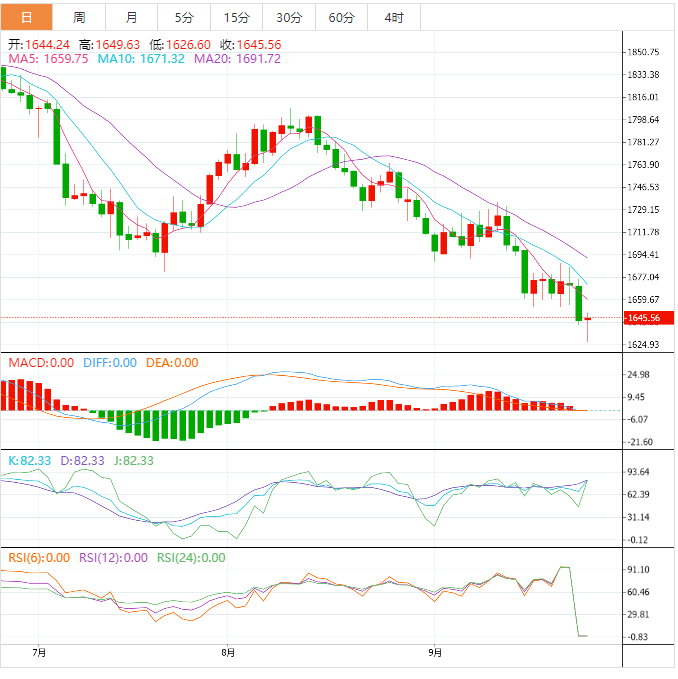 今天的预期交易区间在 1615.00 支撑位和 1655.00 阻力位之间。