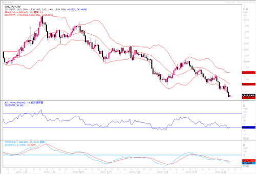 最近几周,由于市场预期美联储和全球其他央行将采取更激进的货币紧缩政策,金价一直在下跌。这当中,受英镑、欧元和日元持续暴跌的影响,美元指数升至2002年以来的新高,日内最高触及114.65,资金对美元的趋之若鹜,也持续对黄金造成压力。今年3月,金价一度突破2000美元关键大关,但随着各大央行大幅加息以抑制不断飙升的通货膨胀,迄今已下跌逾400美元,跌幅超过20%。上周,美联储将利率上调75个基点,并暗示未来还将进一步加息。美国利率上升削弱了非孽息黄金的吸引力,同时提振了美元和债券收益率。10年期美国国债收益率攀升7.2个基点,至3.762%。指标美国国债收益率在2011年以来的最高水准附近企稳,增加了持有无息黄金的机会成本。上周各国央行的一系列升息举措令金价近期承受沉重压力,且在未来数月央行不会改变策略的情况下,黄金的中期前景看起来相当黯淡。本周末将有一系列通胀数据出炉,预计将显示消费者价格指数(CPI)仍在以越来越快的速度上涨。这将加强央行的鹰派策略,他们一直在利用加息来试图将通货膨胀率拉低到2%左右的目标数字。目前看来,这是一个比较遥远的希望。