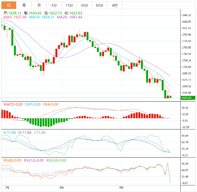 黄金价格1621.46-1649.83美元的范围内拍卖,波动率出现收缩,水平阻力位位于9月16日低点1654.17美元。