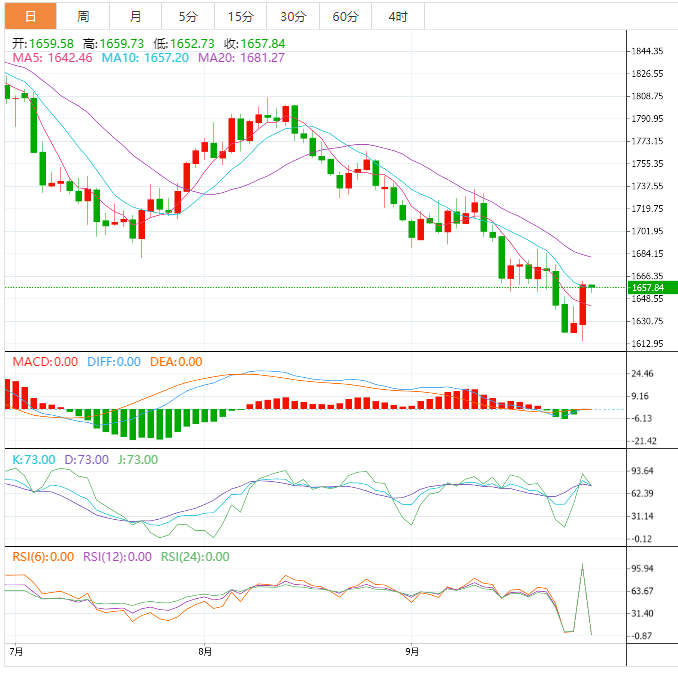 金价近期的下跌已将其推入熊市区域。技术层面上,国际黄金周二触底反弹维持震荡走势,日线录得上影线较长小幅阳线,日线移动平均线维持较为规整向下发散排列形态,维持日线级别较为强劲偏空指引参考。目前短期重要压力为1653附近,如果该位置被突破,很可能有一部分多头进入反击。