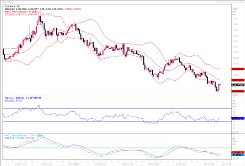 技术图形上,隔夜日线收盘一根大阳K线。日线连阴下跌之后,首次收盘大阳K线,一阳吞两阴,短线暂时止跌反弹修正,局部进入震荡。日线结构来看,今明两日周线和月线收官之作,倾向于暂时维稳在1610上方走震荡修正。4小时图低位双连阳反弹,直接将周初的下跌失地尽数收复,这种阴跌快反弹的走法,恐会引发较为剧烈震荡走势行情出现。日内须防先回踩后扬升的震荡走法。上方下行趋势线的阻力在1690,同时此前的次高点阻力在1680-1687一带。整体而言,反弹若接近1690-1680一带料会形成局部的拉锯震荡。而短线的支撑将落在1640-1642。