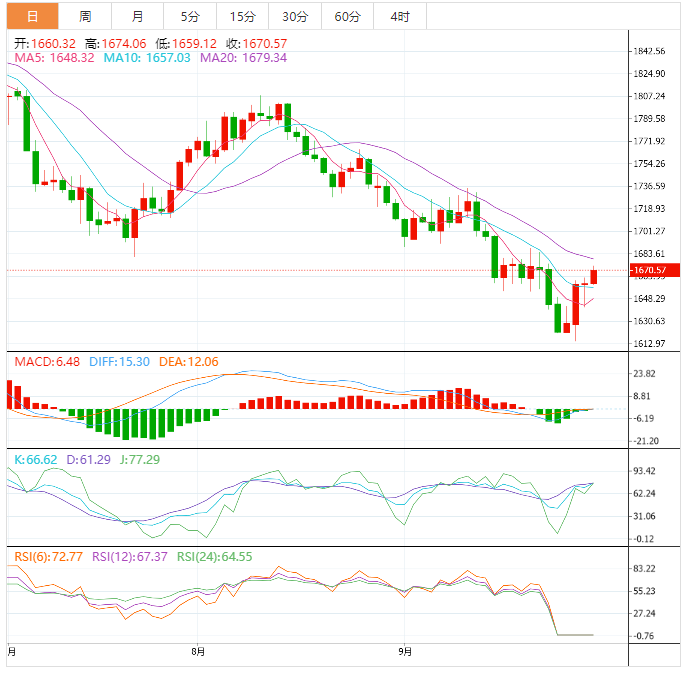 近期从月峰值下跌的38.2%斐波那契回档位将为进一步上涨铺平道路。黄金可能会加速向1674- 1675美元供应区前进。持续走强可能引发空头回补,多头将目标瞄准1700美元的圆位数关口。