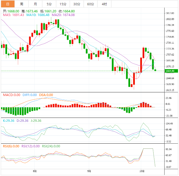 周二亚盘,现货黄金徘徊于1670附近。金价周一下跌超过1%,美元上涨和对美联储将激进加息的押注巩固,导致非孽息黄金触及一周最低。黄金已经连续第四个交易日下跌,可能是8月中以来最糟糕的一段走势。