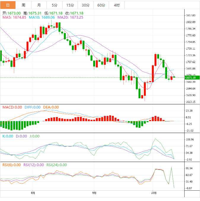 技术上,MACD金叉信号仍在,红色柱仍在,在跌破1659一线支撑前,多头仍有重拾涨势的机会;初步阻力在21日均线1673.93附近,5日均线阻力在1682.35附近,10日均线1687.60是多重阻力位所在,需要重点关注,若能收复该位置,则增加短线看涨信号;进一步阻力参考1700整数关口,55日均线阻力目前在1720.31附近。