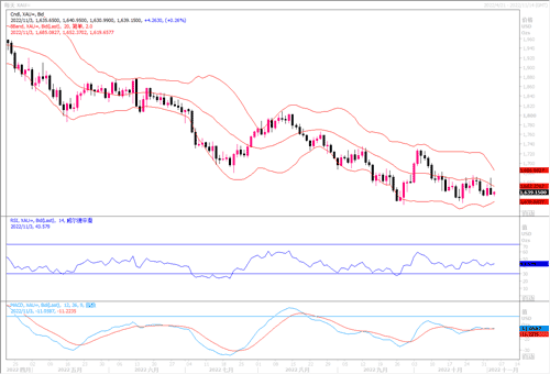 美联储升息线索是影响黄金走势的主线,目前美联储货币政策仍然是升息为主导,虽然间或偶有放缓升息言论出现,但总体来说,也仅是只言片语,并未成气候,因此在缺乏其他利好消息引入的情况下,黄金走势依然是弱势为主,不排除后续在经历震荡后,有继续杀跌下探的可能,黄金下方支撑看1560,上方阻力1680一带。