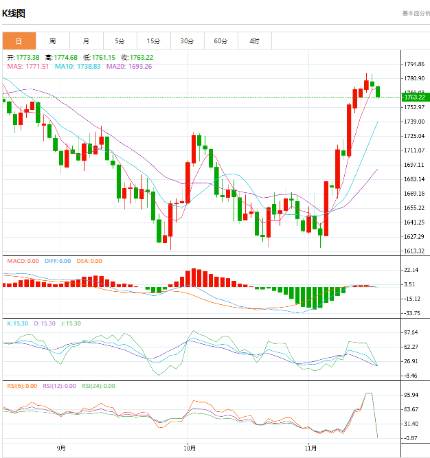 今天的预期交易区间在 1746.00 支撑位和 1780.00 阻力位之间。今天的预期趋势:看跌