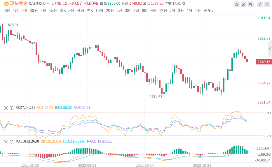 事实上,目前的市场定价表明,FOMC在12月下次政策会议上加息50个基点的可能性更大。这进一步促使资金从无收益的黄金价格流出。尽管如此,谨慎的市场情绪可能会阻止看空交易商对黄金/美元大举押注,并限制跌幅,至少目前是这样。
