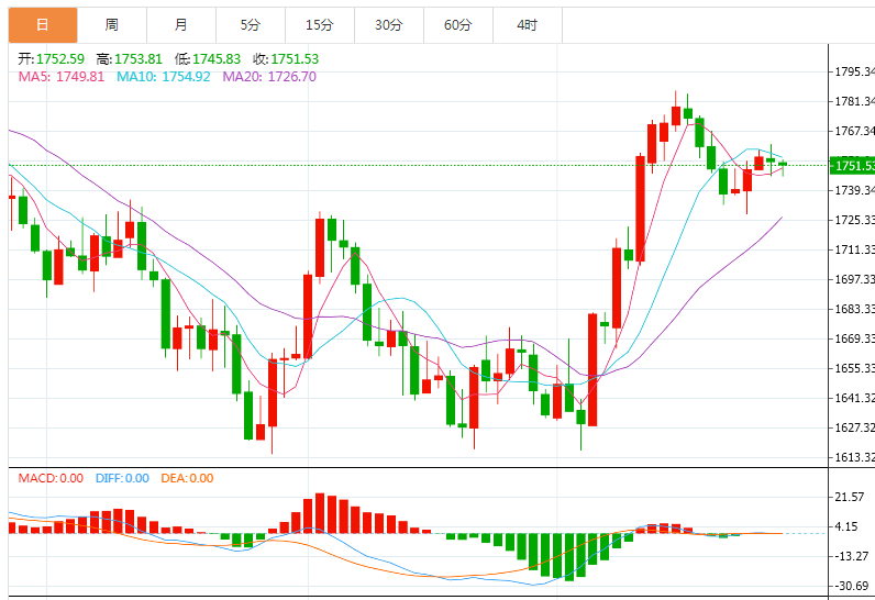 技术上,在上周突破看涨旗形后,金价在周一继续在1747美元/盎司上方盘整。这个水平是金价从11月3日低点1617美元/盎司反弹走势的23.6%斐波那契回撤位。