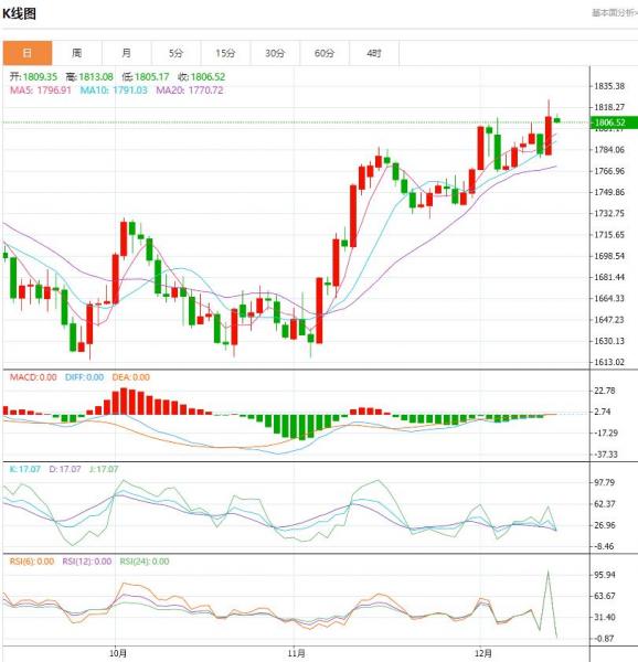 金价涨势在1810.00附近止步,今日开盘开始出现利空,日内有望下行,主要目标测试关键支撑位1764.40。