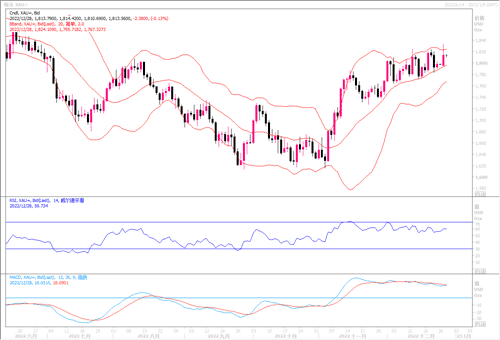 中国进一步重新开放提振风险情绪,推高金价。尽管西方圣诞假日市场清淡,黄金的上升趋势仍然完好无损。27日亚市午盘,黄金短线站上1810美元高价,盘中最高去抵1833.29美元,收盘于1813.30美元,全日升幅0.90%。