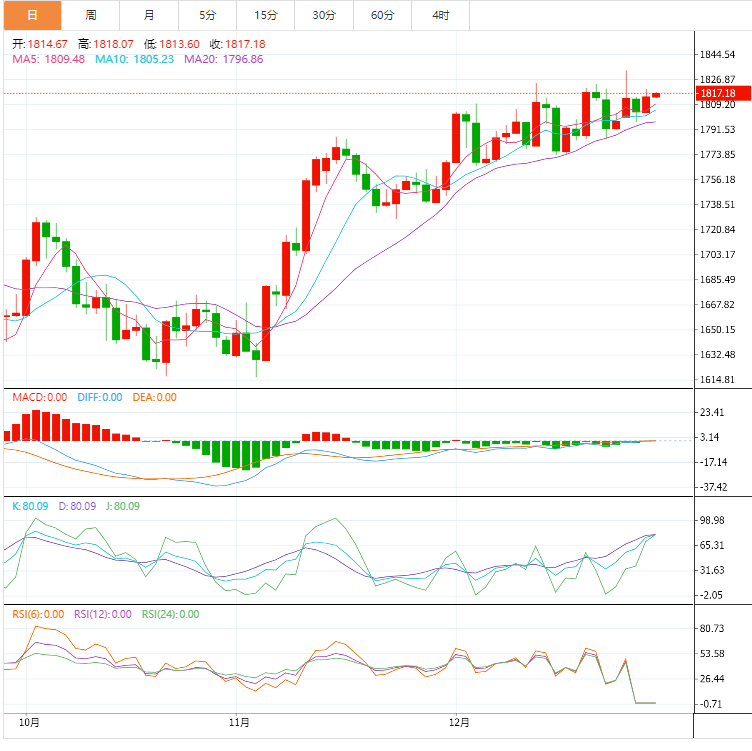 本交易日留意美国12月芝加哥PMI和亚洲疫情相关消息,重点关注最后一个交易日的收盘情况。目前来看,周线和月线均有望收涨,技术面信号暗示后市偏向多头。