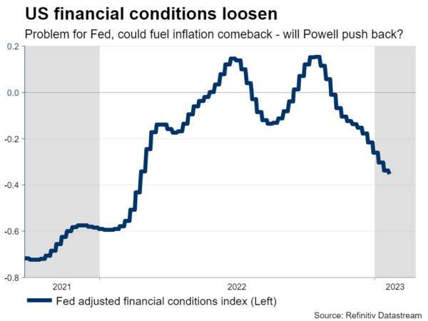 市场已经完全消化了下周加息25个基点的预期。由于这基本上已经完成,美元的反应将主要取决于鲍威尔主席在新闻发布会上所说的话。他可能不会对金融状况的大幅放松感到高兴,金融状况已经回到了美联储开始紧缩周期时的水平。