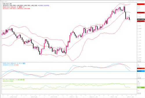 周四(2月9日),现货黄金先扬后抑,金价重新回到1880美元/盎司关口下方,最后低收于1861.62美元,全日下跌了0.73%。