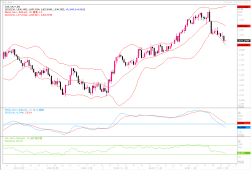 周三(2月15日)美国公布“恐怖数据”-1月份零售销售“爆表”——大超预期,现货黄金继续承压下行,全日下跌1.01%,盘中最低抵达1829.80水平,当日高低再度跌去近30美元。
