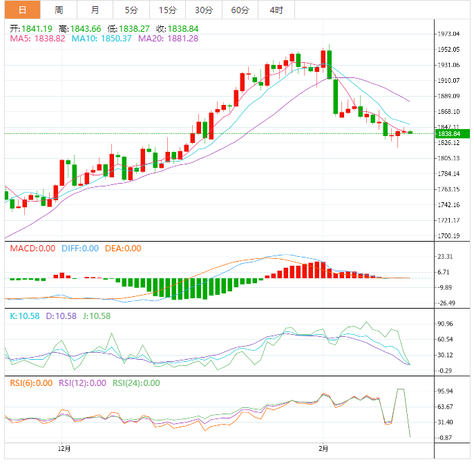 金价在100天和50天指数移动平均线(EMAs)之间波动,分别接近1820美元和1854美元。最近的不作为应该是从疲软的相对强弱指数(RSI)线(位于14)中得到的线索。