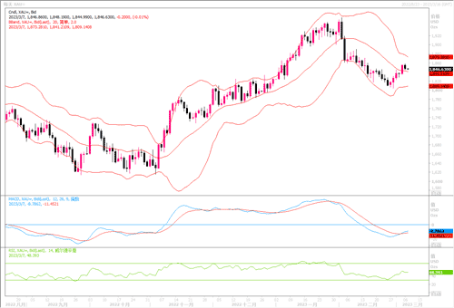 自上周五现货黄金出现大涨后,周一(3月6日)出现略微的获利回吐,脱离上周五高点1855美元,收盘于1846.46美元水平。因为在鲍威尔的证词以及周五的美国2月份就业报告等关键事件之前,黄金交投情绪显得较为谨慎。