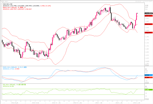 周一(3月13日),现货黄金升创2月3日以来新高1913.17美元/盎司,全日升幅达2.46%(日升幅超过40美元)之巨。因硅谷银行倒闭引发的不确定性促使投资者寻求避险,美债收益率大跌,促使投资者押注美联储本月可能很难重新加速升息,并且不排除年内降息可能。