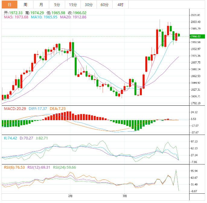 也就是说,围绕1960美元的10日移动均线水平与2月初围绕1955美元的顶部一起限制了黄金的短期下行。