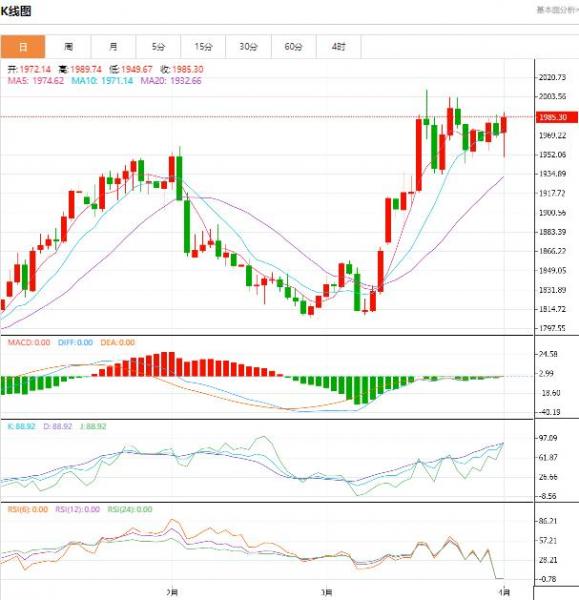 今天的预期交易区间在 1935.00 支撑位和 1970.00 阻力位之间。今天的预期趋势:看跌