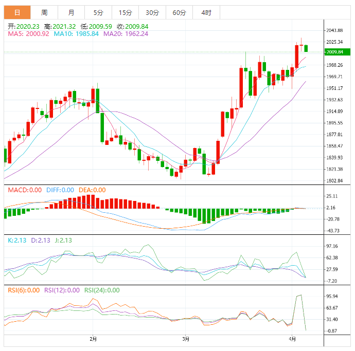 周四亚洲时段,黄金交投于2009.82附近。黄金周三触及一年来最高,最近的美国经济数据助燃了对经济放缓的担忧,并刺激了对美国美联储可能放缓加息的押注。周二在数据显示美国2月职位空缺大幅下降后,黄金迅速突破了2000美元的关键水平,将之前的涨幅进一步扩大。本周稍早,石油输出国组织(OPEC)推动油价急升,引发了对通胀再次攀升的担忧,推动金价上涨。分析师表示,随着经济忧虑增加,黄金可能在2000美元上方维持涨势。