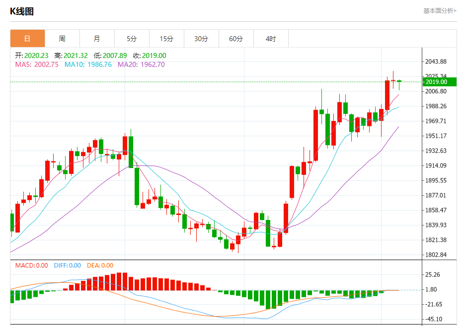 截止发稿,黄金价格现报于2019.00,跌幅0.05%。(亚汇网编辑:冰凡)