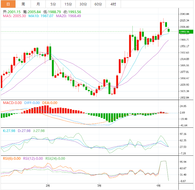 黄金价格正朝着3月15日低点1,885.77美元/小时的向上倾斜趋势线下跌。黄金已经跌破了2000美元的心理支撑。