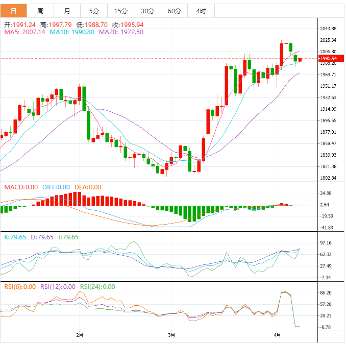 短线美元和美债收益率存在进一步反弹机会,这令金价面临进一步回调风险,而且技术面来看,金价短线看空信号有所增加,可能会进一步试探21日均线1969附近支撑;但在失守21日均线1969.60前,金价中长线仍有进一步走高机会,对银行业动荡和经济衰退的担忧有望给金价提供避险支撑,地缘局势依然紧张,而且对全球央行未来的降息预期,也有望吸引逢低买盘支撑金价。