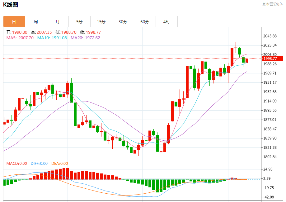 技术点评:在1993.00之上,为多头信号,向上的目标位为2014.00。